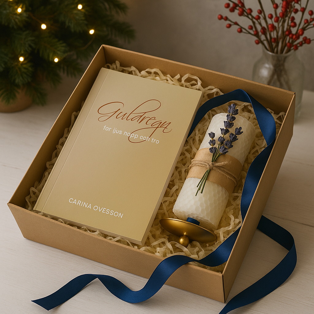 Lägg till julboxen och få boken inslagen i ett vackert paket tillsammans med:🕯️ Tre handgjorda bivaxljus med lavendel.🌙 En gyllene ljustallrik.